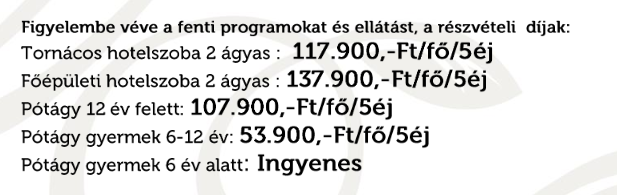 Figyelembe véve a fenti programokat és ellátást, a részvételi díjak következők: