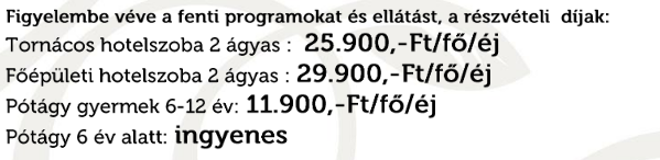 Figyelembe véve a fenti programokat és ellátást, a részvételi díjak következők :