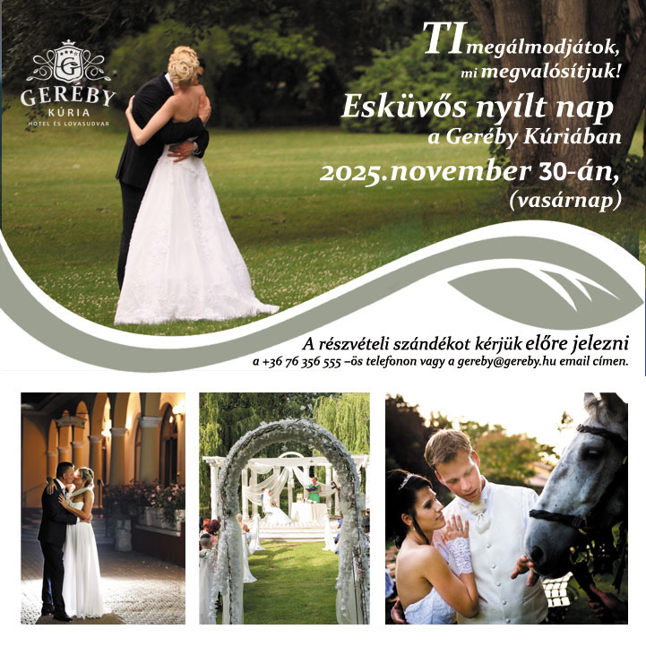 2025.11.30-án esküvős nyílt napot tartunk, melyre előzetes jelentkezés szükséges. Bővebb információ és jelentkezés itt.>>>